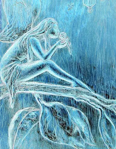 Lunantisidhe is an odd blending of the Latin word Luna (Moon) and the Gaelic Sidhe (fairy). Their sole purpose is to protect the blackthorn tree from encroachment. The only time they will leave the trees is to pay homage to the moon goddess at the Esbats. ( Esbats celebrate the 13 full moons that occur each year). They are lunar and represent the goddess at the height of her power.