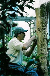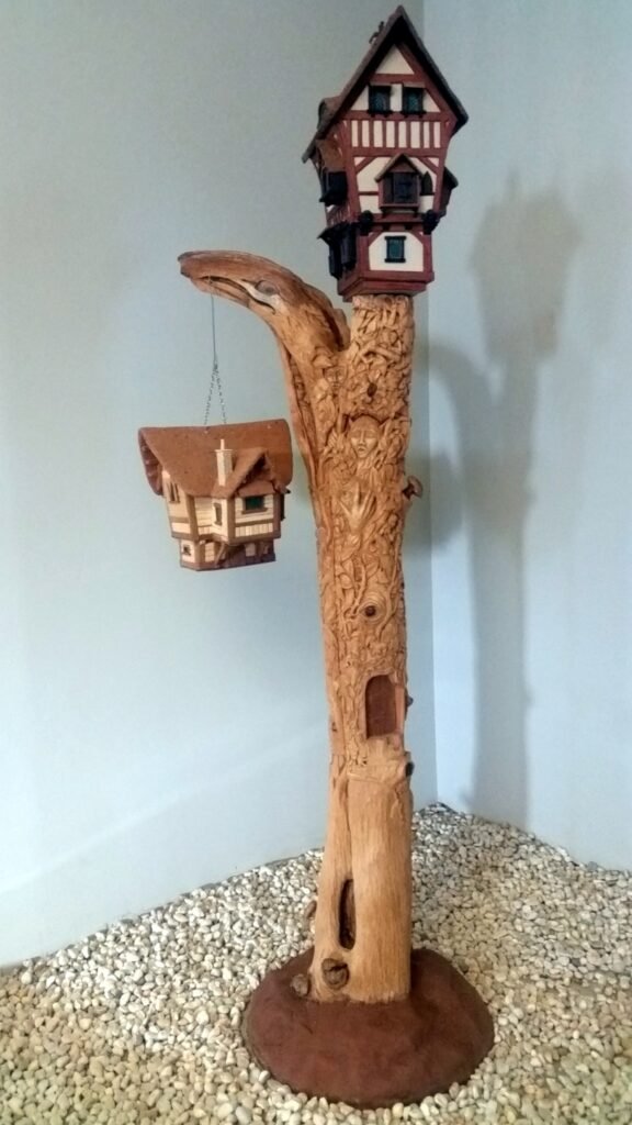 .My grandmother was a great believer in the Faery realm and had the greatest respect for them. I am very fortunate and grateful to my grandmother for the lasting impressions that she instilled in me. In 1999 three years after moving to North Carolina, I discovered my ability to carve and sculpt wood. So this tree is a tribute to my grandmother and the joy it now bring to others.