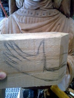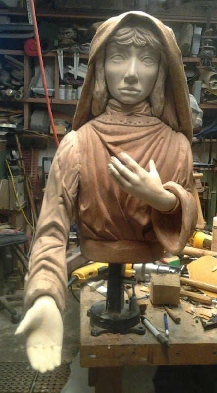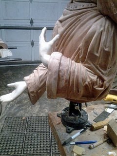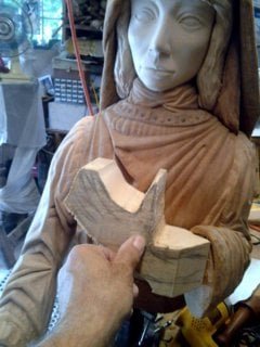 Partial display of my work process in carving my sculpture of Mary for Immaculate Heart of Mary Catholic Church in High Point. North Carolina.